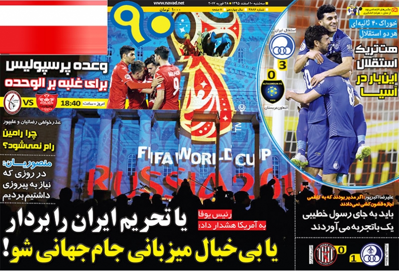صفحه اصلی / روزنامه / روزنامه های ورزشی سه شنبه ۱۰ اسفند