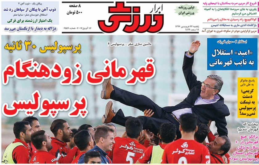 صفحه اصلی / روزنامه / روزنامه های ورزشی یکشنبه ۲۷ فروردین ۹۶
