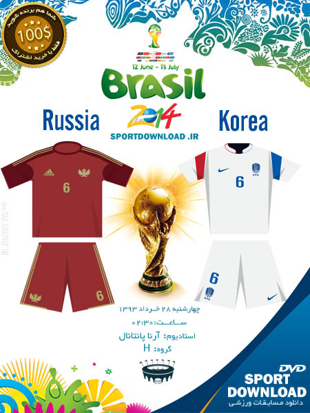 دانلود بازی روسیه و کره جنوبی در دومین دیدار گروه H مسابقات جام جهانی ۲۰۱۴ برزیل,از ساعت ۲:۳۰ بامداد دو تیم روسیه و کره جنوبی در ورزشگاه پانتانال به مصاف هم رفتند.در این دیدار دو تیم به تساوی ۱-۱ رضایت دادند.برای کره لی و برای روسیه کرژاکوف گلزنی کردند.